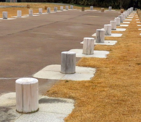 長大な建造物遺構を半立体表示する丸太の列