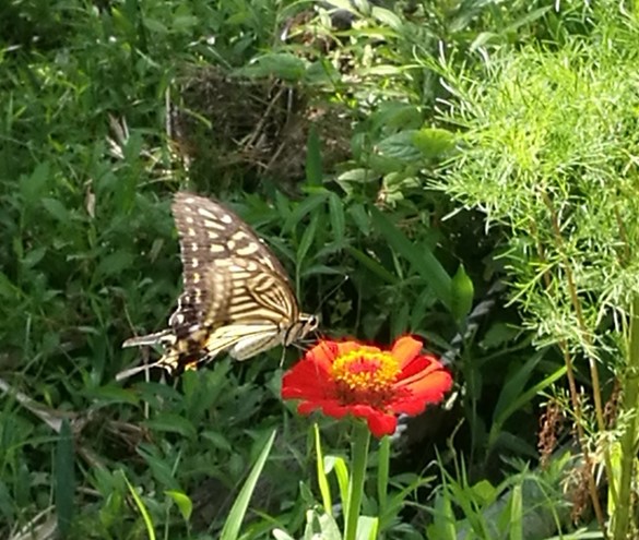 百日草を「渡り歩く」蝶 |