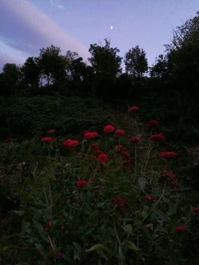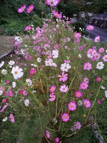 自然生(しぜんばえ・ひとりばえ)の コスモス (右欄の写真と同じ夕闇で撮影) |