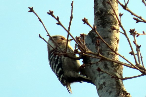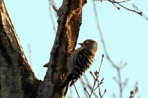 コゲラ(コナラを啄む小啄木鳥、3月2日16:30頃)