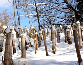 風雪(ふうせつ)の跡(1/26、近隣の竹林にて撮影)
