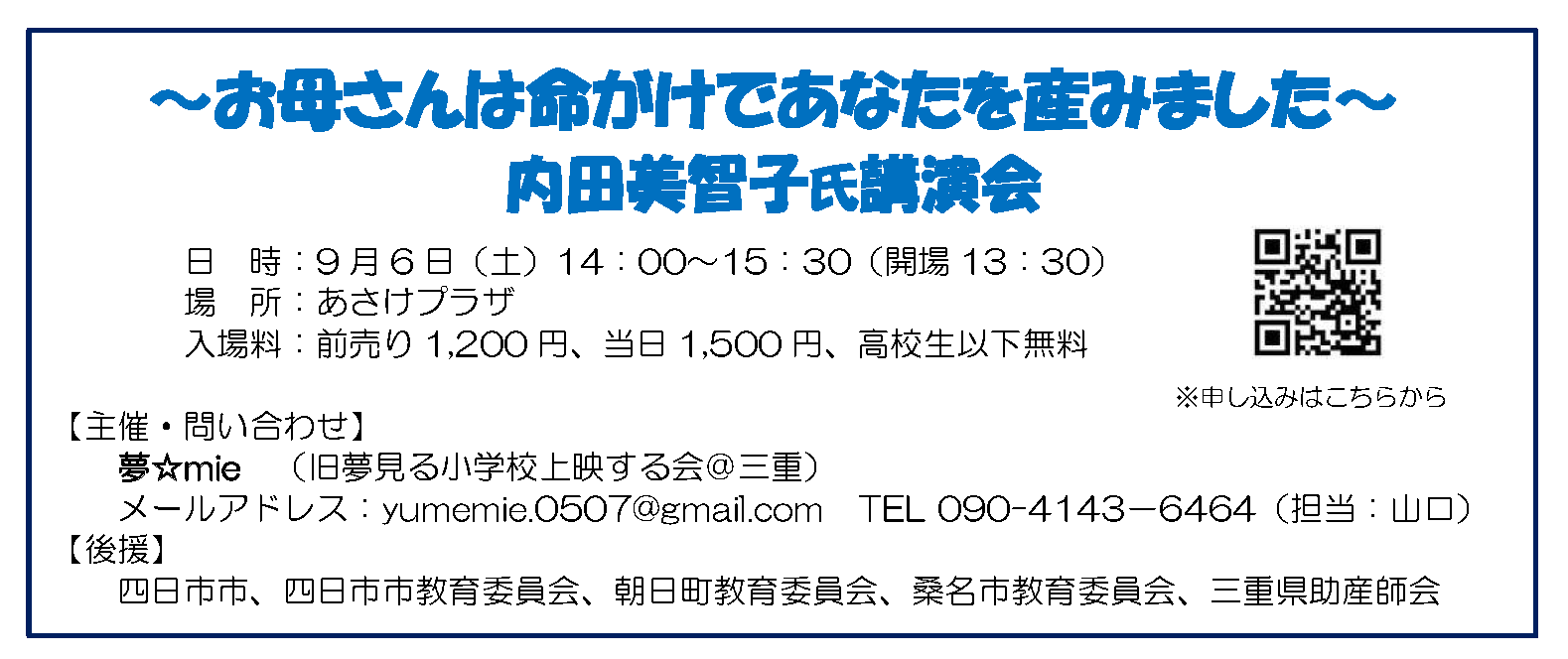 ~お母さんは命がけであなたを産みました~ 内田美智子氏講演会
