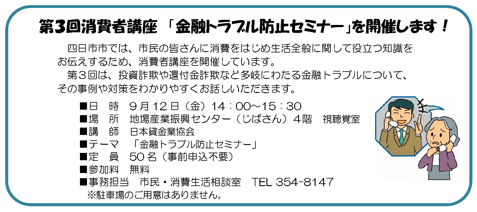 第3回消費者講座「金融トラブル防止セミナー」を開催します!