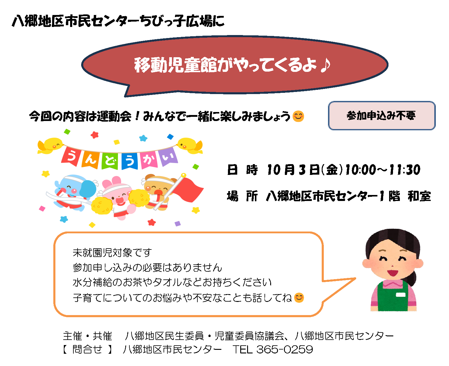 八郷地区市民センターちびっ子広場に移動児童館がやってくるよ♪