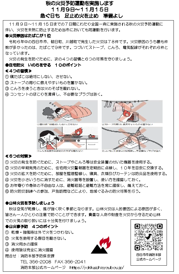 秋の火災予防運動を実施します(11月9日~11月15日)