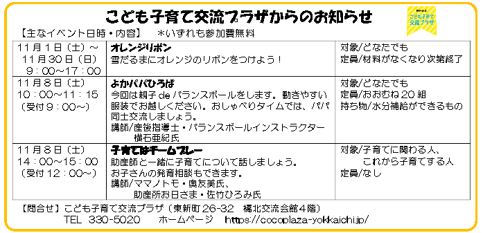 こども子育て交流プラザからのお知らせ