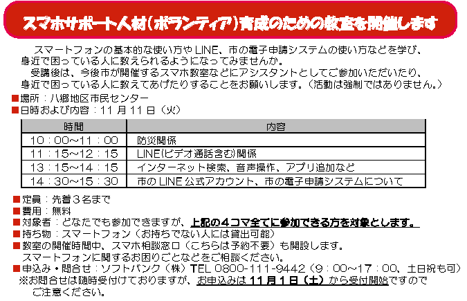 スマホサポート人材(ボランティア)育成のための教室を開催します