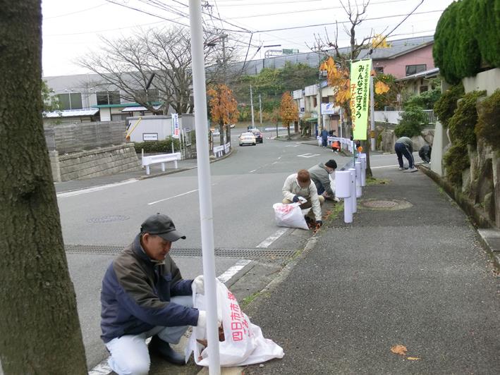 役員・組長及び有志の方々によりマロニエの街路樹のあるバス通り及びこども広場の美化が推進されました。