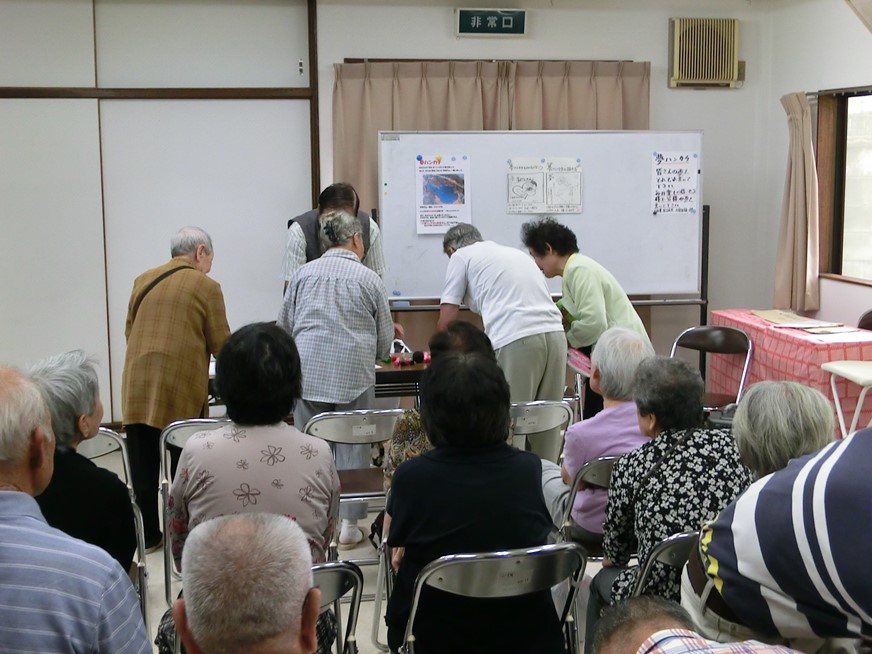 夢ハンカチに夫々の夢を書いて戴き敬老会は終了しました