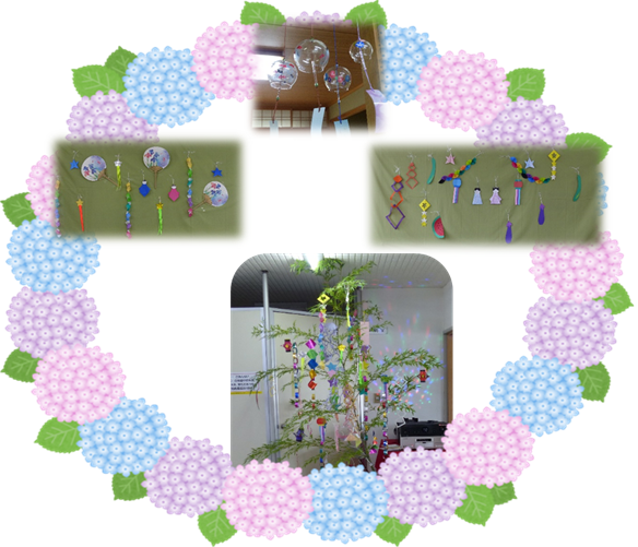 涼しげな風鈴と一足早い七夕飾り。皆さん、短冊にはどんな願い事を書きましたか?