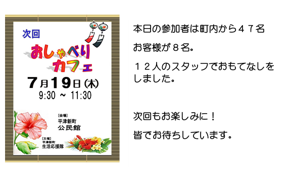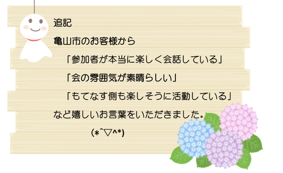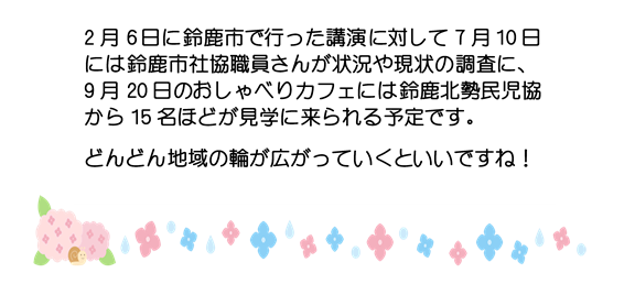 本日のゲストは八郷センターの副館長さんとハピネスやさとの職員さん。後ほどご紹介する亀山市と四日市社協の方々です。
