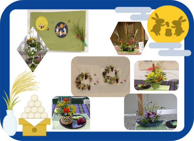 今月のテーマは「お月見」すすきや葡萄、赤とんぼも飛んでいます。