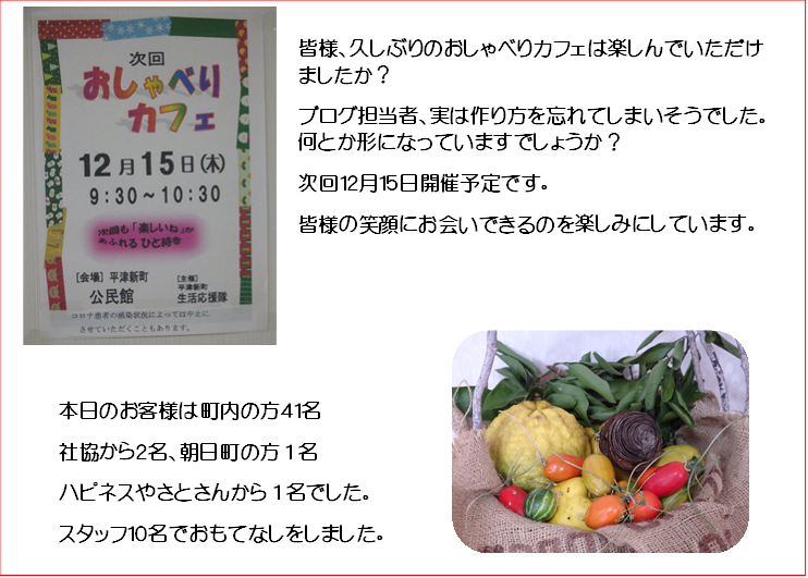 2年9か月ぶりに開催されましたおしゃべりカフェ。皆様、お変わりはありませんか?