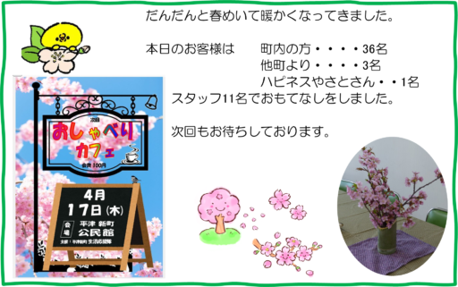 3月20日(木)おしゃべりカフェの開店です。
