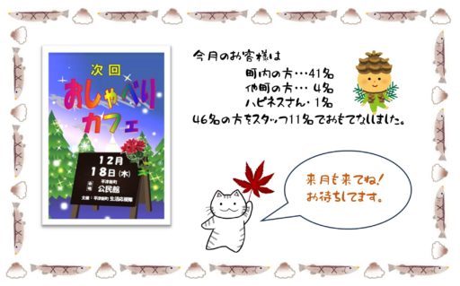 1120日(木)おしゃべりカフェの開店です。