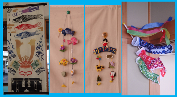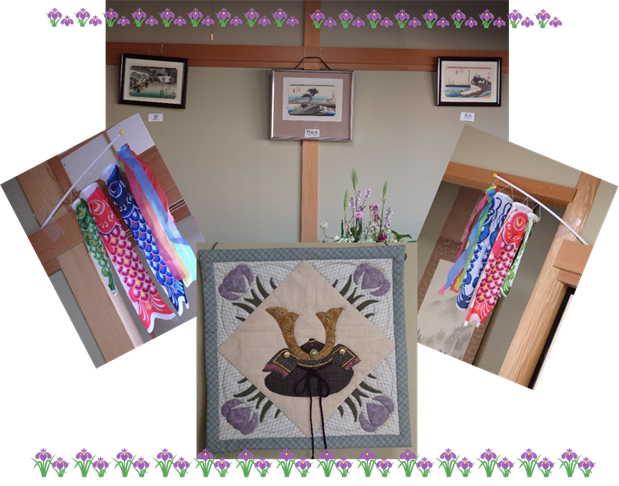 お馴染み東海道五十三次と鯉のぼり。兜のパッチワークはどなたの作品でしょうか❓