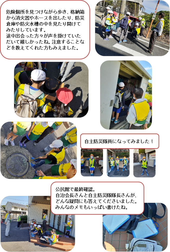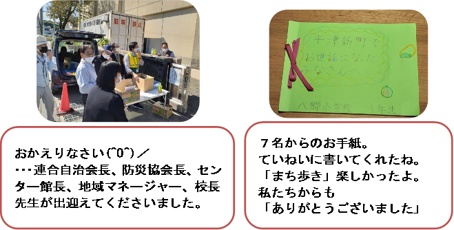 子どもたちから、地域へお礼の手紙をいただき、防災の勉強を真剣に取り組めていたことを改めて感じました。私たち地域からも「どうもありがとうございました!!」