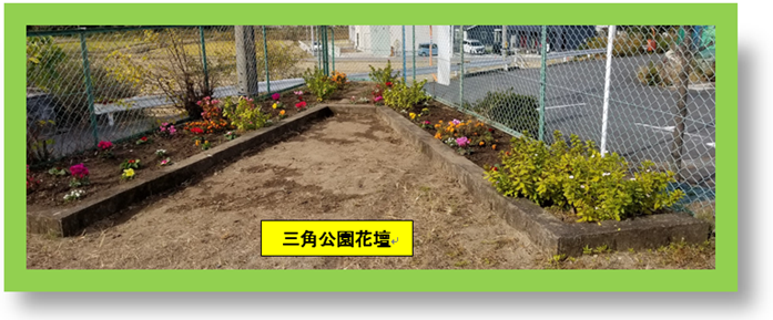 恒例の「花と緑いっぱい運動」小春日和の穏やかな天候のもとで、公民館と三角公園の花壇の花の植え替えと、街路樹の根本に「タマリュウ」の植え付けが行われました。