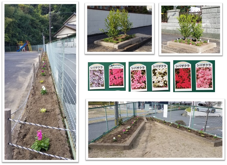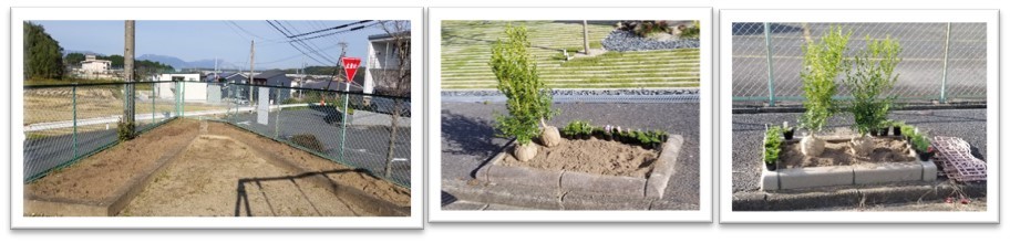 前日に、生活環境部の皆さんで、三角公園と中央道路歩道の花壇の雑草を抜き、耕し、
