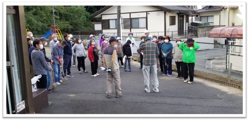 当日11月1日9時 ボランティアの皆さん、自治会四役、生活環境部員全員集合。