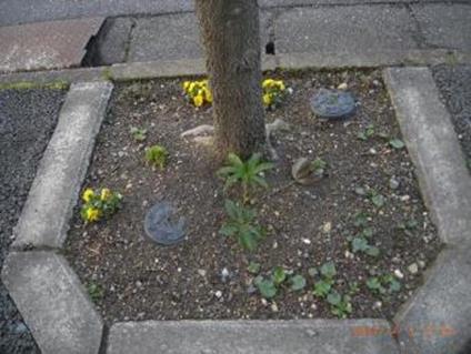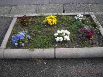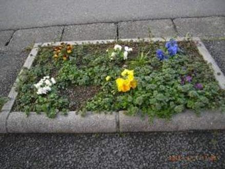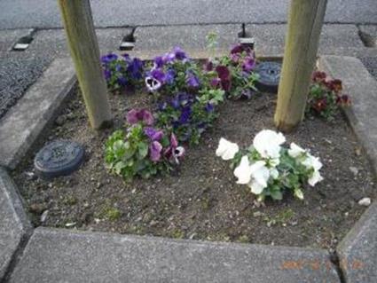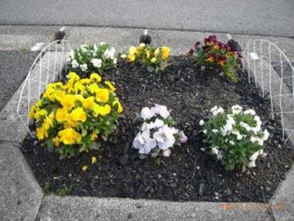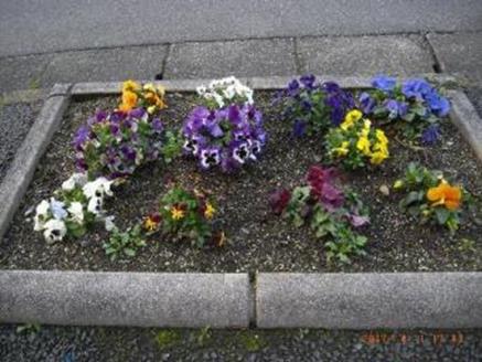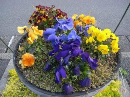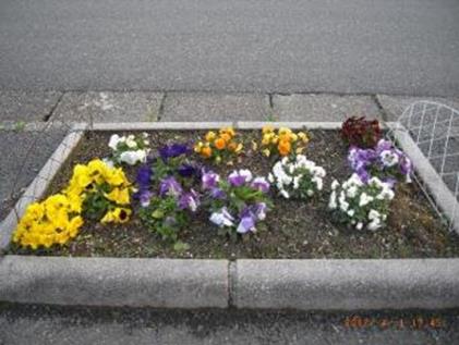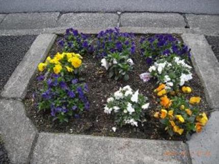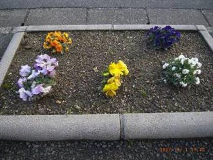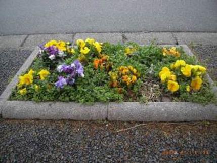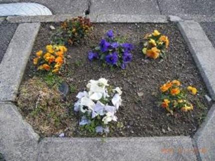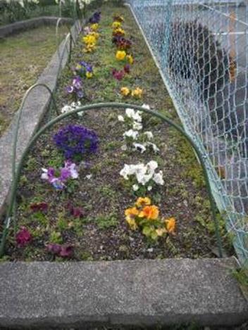 昨年の秋に皆様のご協力で植えた、花壇の花。