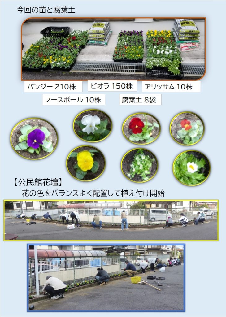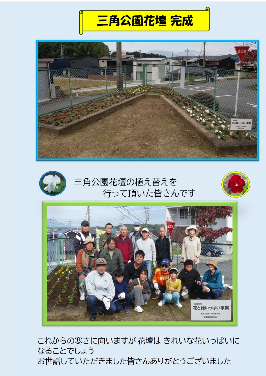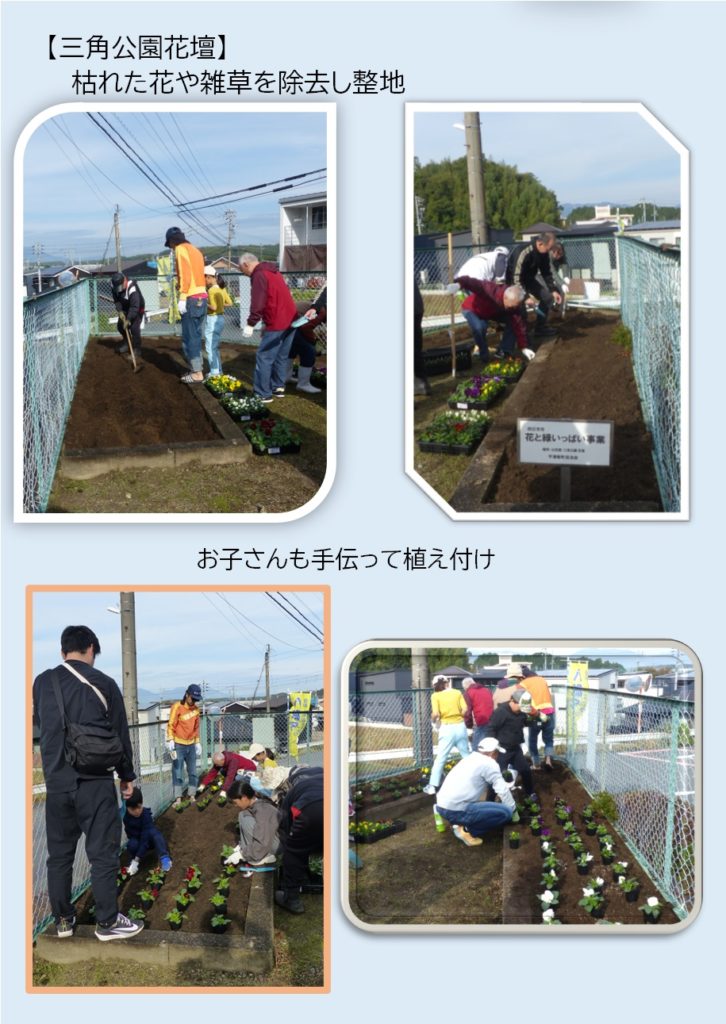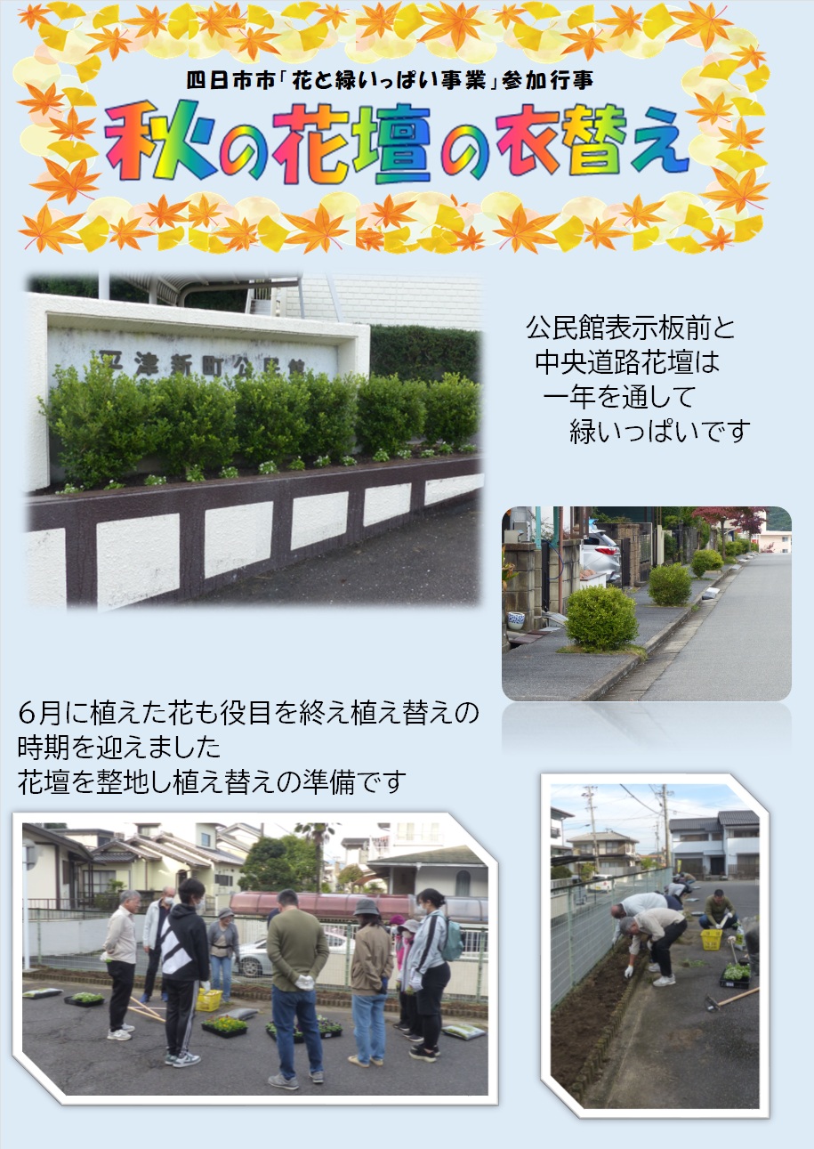 11月2日生活環境部の皆さんの計画指導のもと恒例の町内花壇の花植え換え行事が行われました。