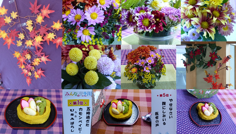きれいなお花と手作りのフルーツ。心に刺さる川柳も・・・((+_+))