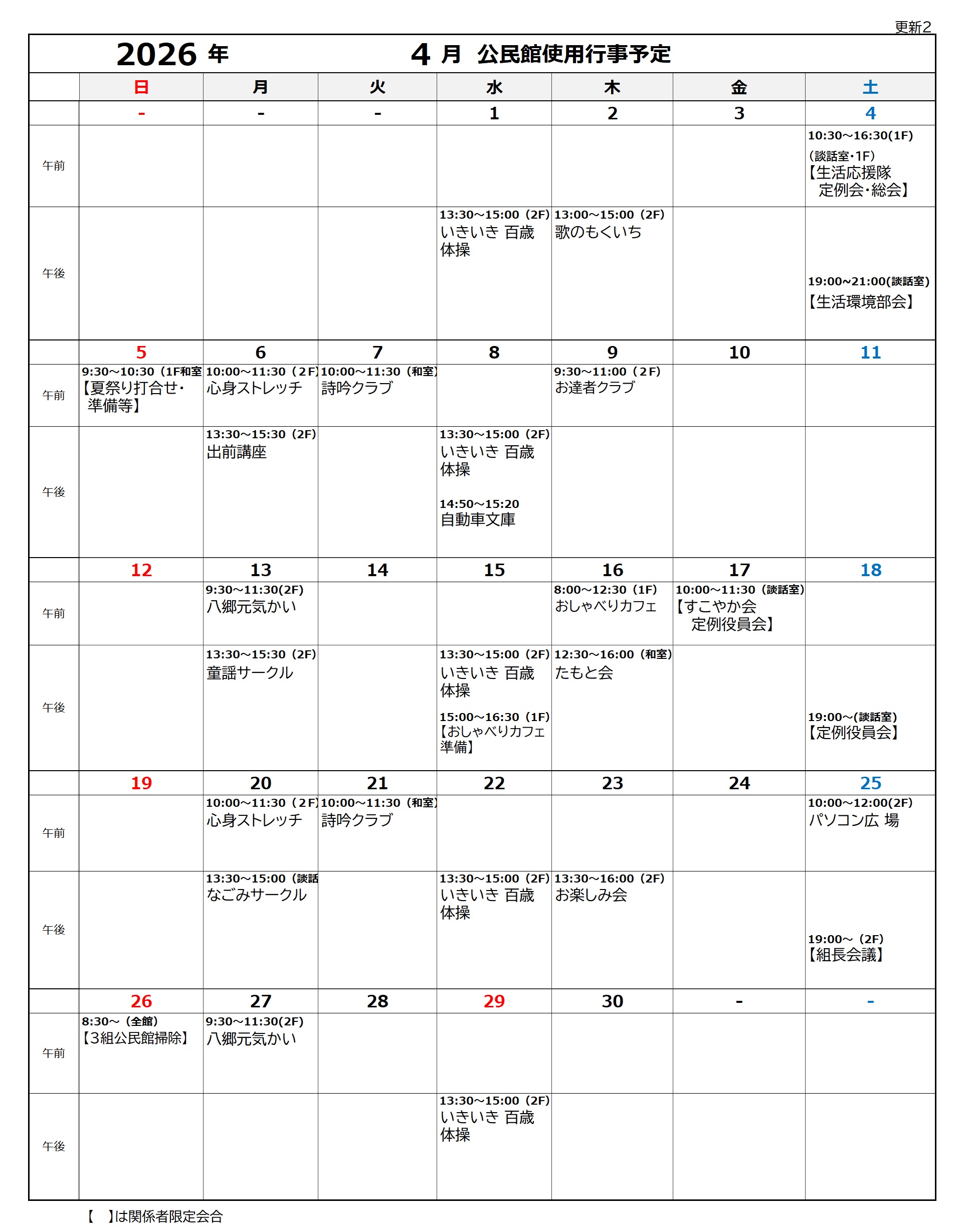 主催 : 四日市市ヘルスリーダーの会 対象:おおむね65歳以上の市民の方 ※イスに座ってのストレッチや筋力トレーニングでからだを動かしましょう。 ※マスクの着用や水分補給をお願いします。 参加費 : 無料 持ち物 :マスク、 タオル、飲み物 動きやすく、体温調節しやすい服装でお越しください。