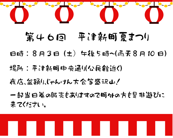平津新町からちょこっとお知らせ