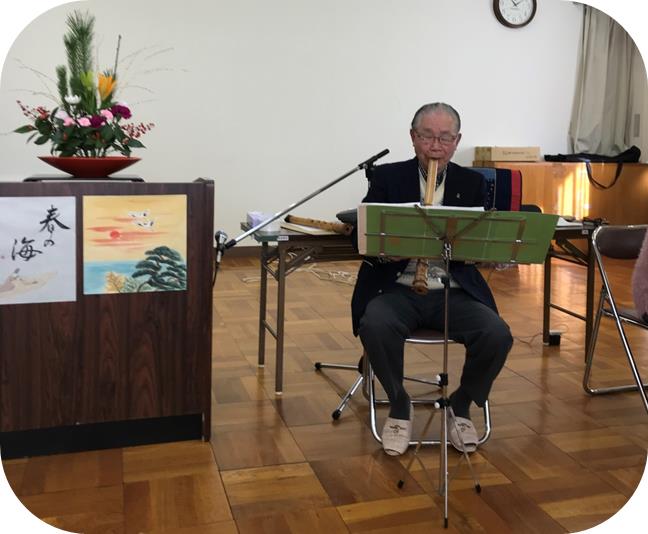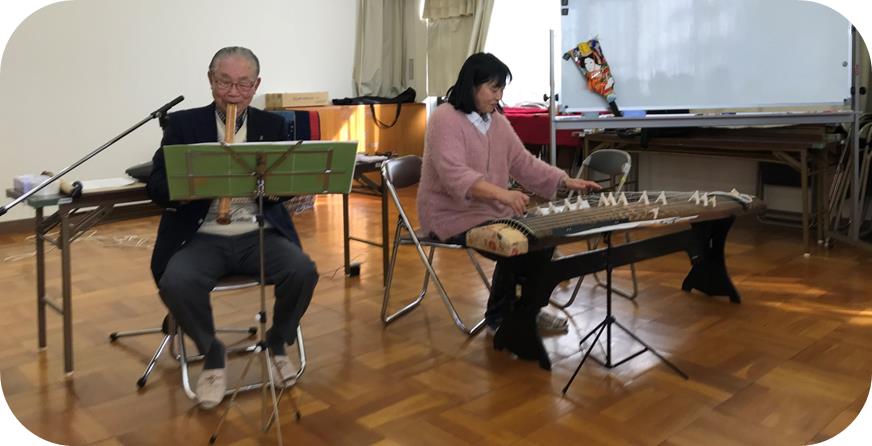 1月14日(月)の童謡サークルは、新春恒例となりつつある「尺八とお琴の演奏」から始まりました。