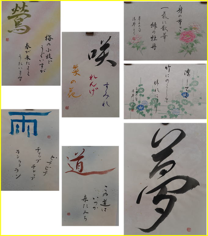 そして・・・「素敵ね!!」Hさんの書と生け花。お休み期間に書かれた書の説明も感動的でした。