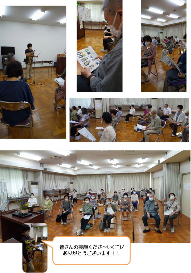 マスクをしていると表情筋が衰えます。せっかく素敵な笑顔の皆さま。マスクをしてのお口の体操をしていただきました。(私はフェイスガードです)