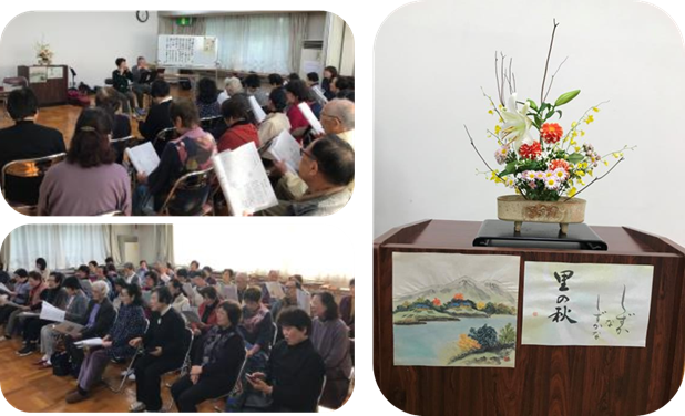 続いて、アートご夫婦によるハーモニカ演奏です。「里の秋」と「かあさんの歌」を歌に合わせて披露していただきました。「すずかけ」の方々も加わり、爽やか合唱団の歌声がホールいっぱいに響きました。