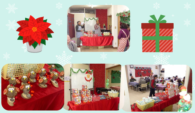 飾り付けはクリスマス仕様。赤緑金色。キラキラ綺麗です✨ツリーも登場✨