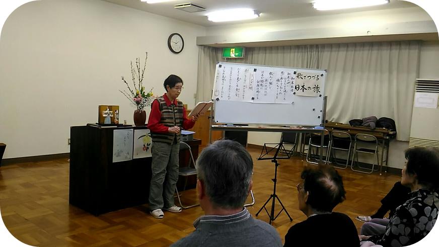 さて、3回目のご披露となりました、すこやか会Sさんの朗読。映画のことや歌舞伎や音楽など豊富な知識をお持ちで、ご趣味も多様な方です。披露していただいている間、2階ホールに高尚な雰囲気が流れたことと思います。また次回も期待しております。