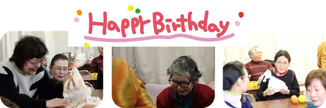 *2月生まれの人の誕生会「3人の方、おめでとうございます。」