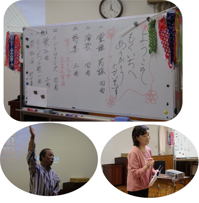 5月3日(木)㊗ 連休後半の初日の「もくいち」ですが、32人の皆様がいらして、元気に19曲歌って楽しい時間でした。