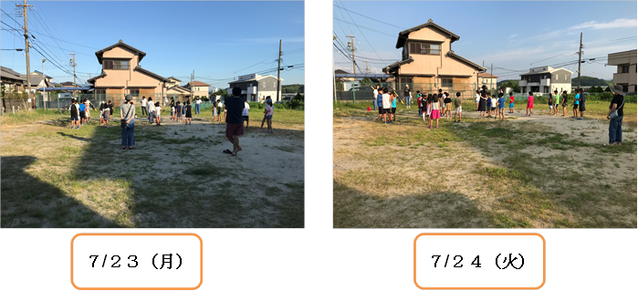 二日目の7/24(火)も元気よく練習。Aさんが撮ってくださった、初日の練習風景の写真が、もう掲示板に貼ってありました。