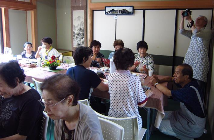 「・・・9時30分から公民館で『おしゃべりカフェ』を開店いたします。皆様ぜひお越しください。」♪