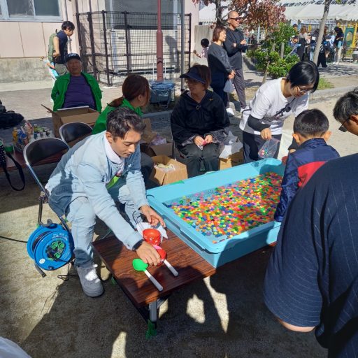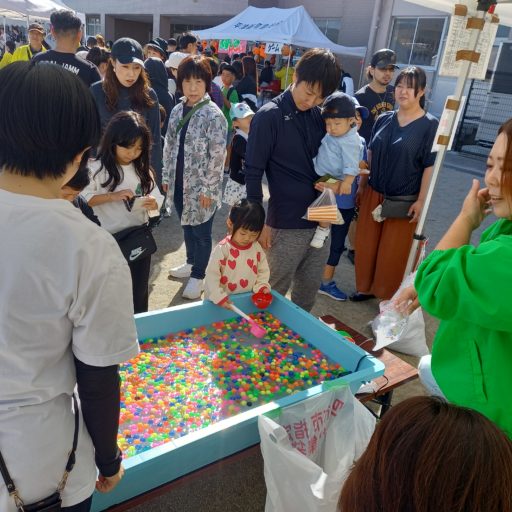 伊坂台地区ではボールすくいのお店を開いて、子どもたちに楽しんでもらいました。