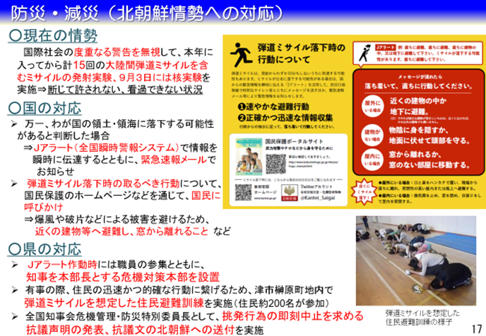 平成29年度四日市市自治会長大会にて、みえの防災・減災についての説明がありました。