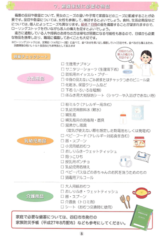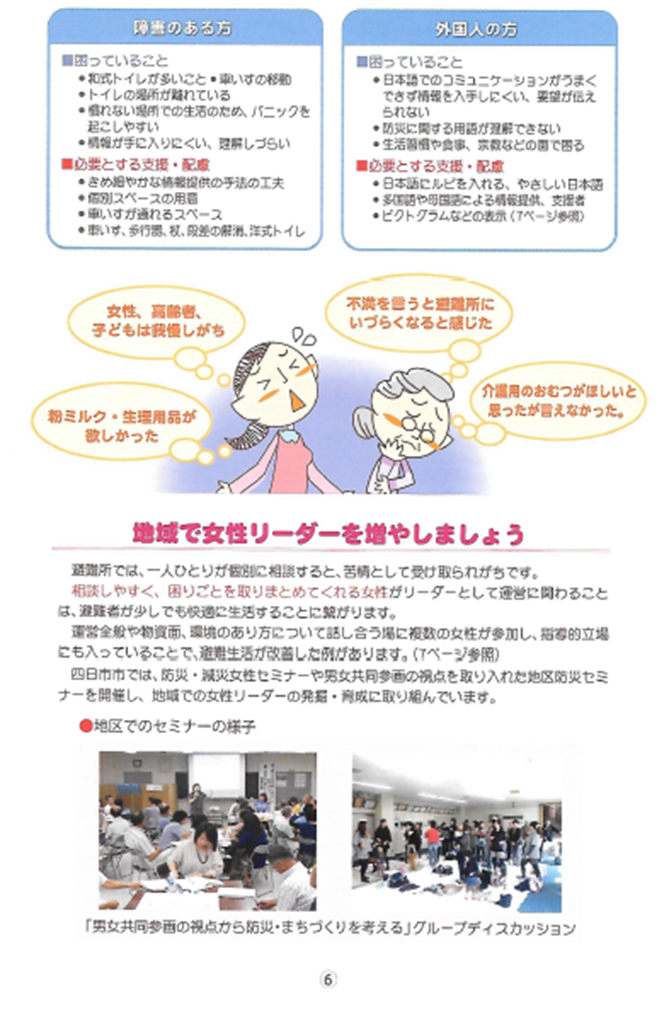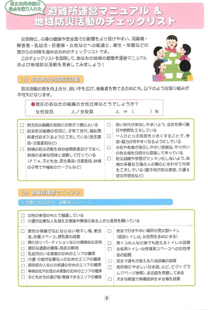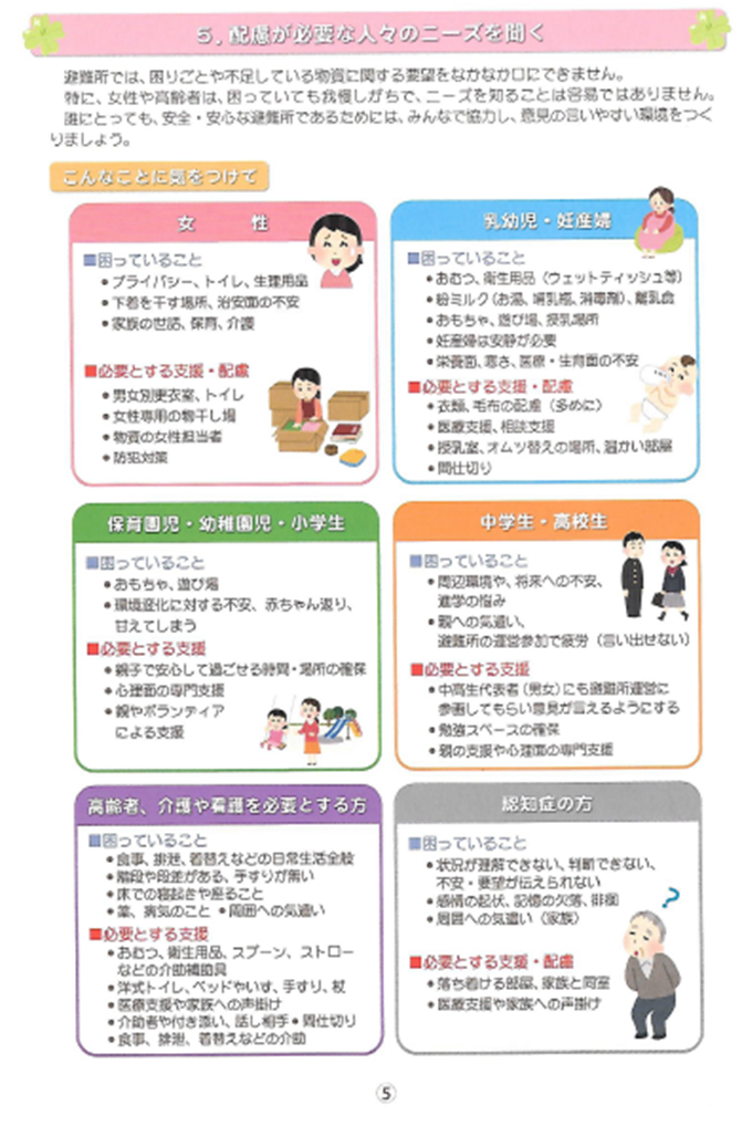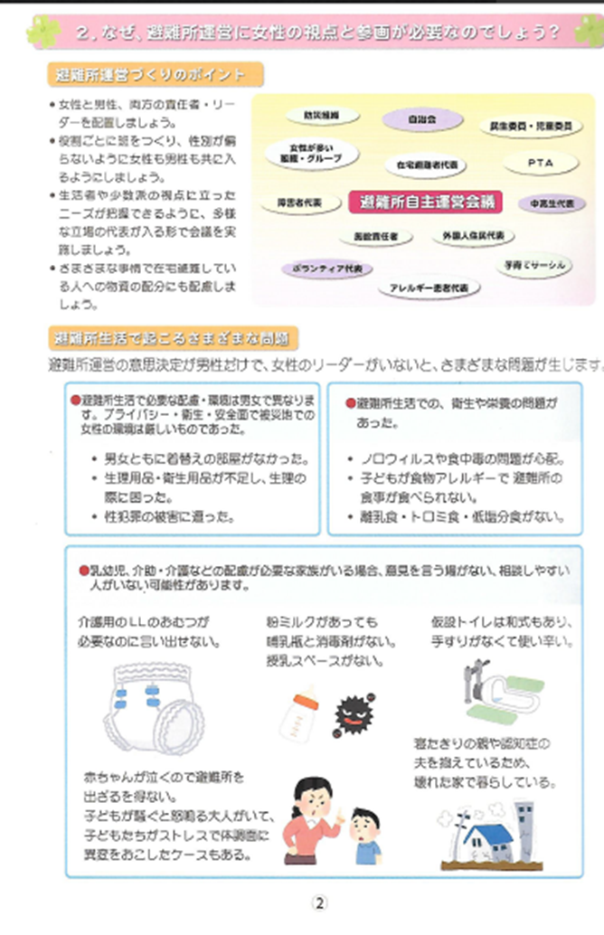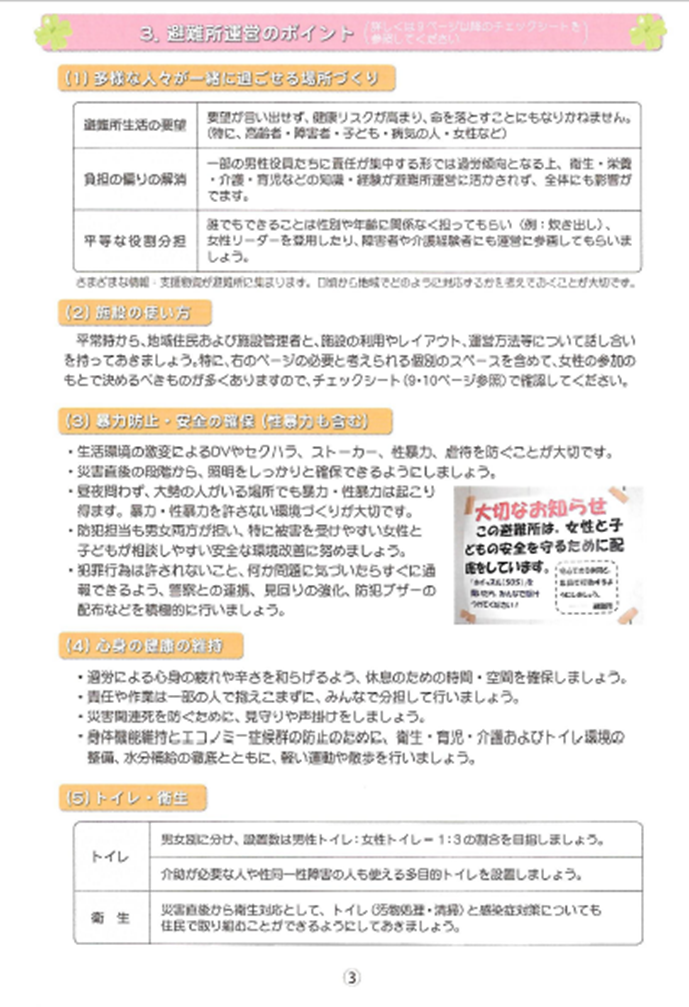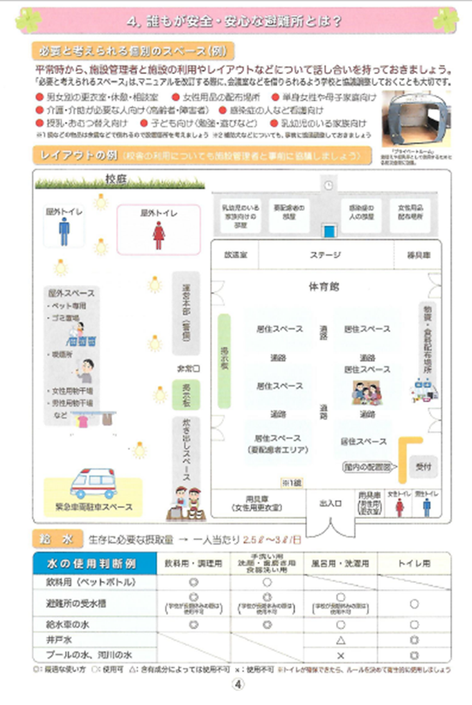 「避難所運営の手引き〜男女共同参画の視点を取り入れて〜(四日市市危機管理室 作成)」にてご確認願います。