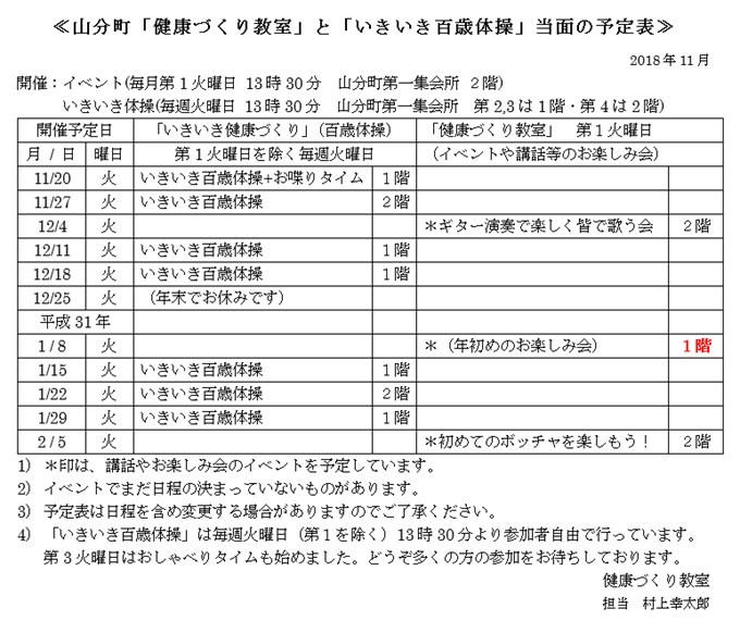 12月4日の「山分町健康づくり教室」は、竹内信夫様のギターと土井国夫様のマンドリン演奏に合わせて、皆で歌を唄いました。